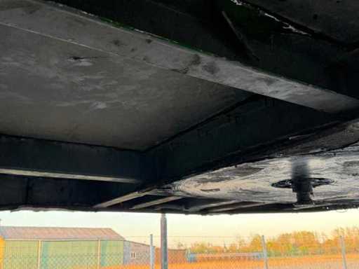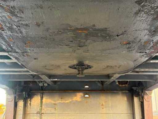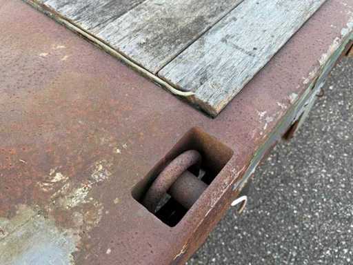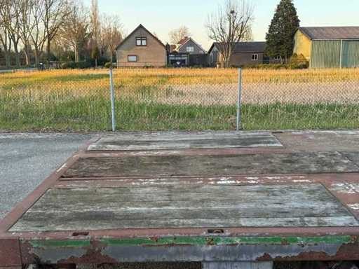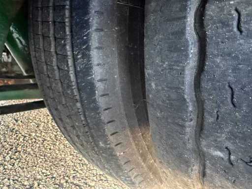 Equipped with: 4x wheel arches, high headboard with work light, last axle trailing steered, sockets at the rear, loading deck, wooden floor, lashing eyes on loading floor, new MOT, rear support legs, side storage compartment