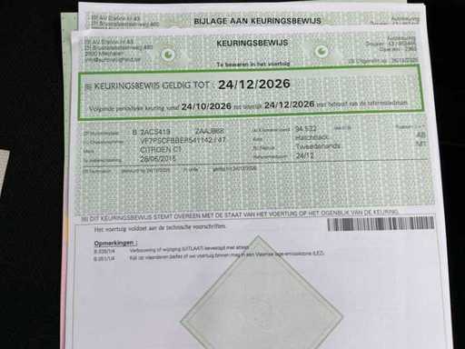 The odometer reads 94,543 km. The vehicle was first registered on 28/05/2015 and has been inspected until 24/12/2026. According to the inspection certificate, the car complies with the technical regulations. Mentioned is a non-original exhaust, attached with a certificate.