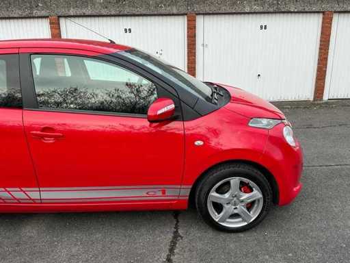 This sporty Citroën C1 combines compact city agility with a striking appearance. Finished in a fresh red paint with contrasting accents, alloy wheels and sporty striping, this C1 clearly distinguishes itself from the standard model.