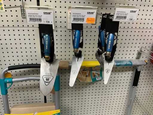 Including Muller concrete cutters, Solid insulation knives, Wolfcraft hand truck, work shoes, masonry tools, Solid breaker knives,...