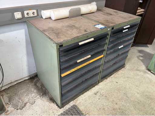 2 x 8 drawer workshop cabinets including contents of hand tools and consumables
