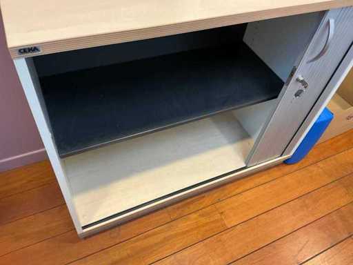 With 2x office chairs, 2x Geka roller door cabinets size 100x44xH87cm, and 2 drawer units