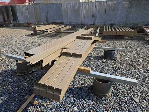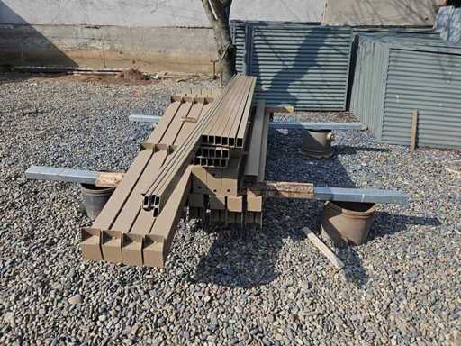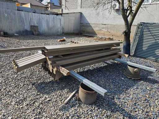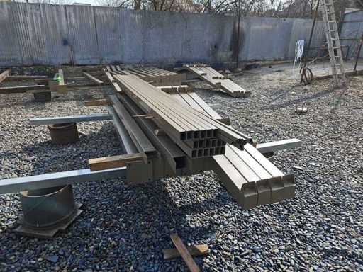The construction consists of: 4 trusses made of square pipe 100x100; 8 pillars made of square pipe 100x100; 2 supporting pillars made of square pipe 100x100; door crossbar made of U profile 100; connecting wedges made of rectangular pipe 60x40; bracings for pillars made of rectangular pipe 30x20;