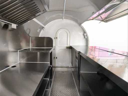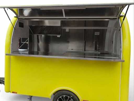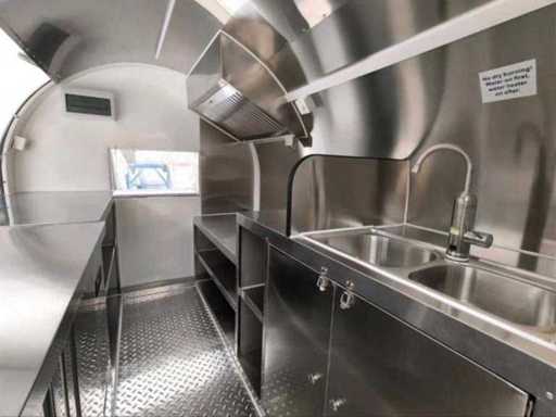Fully equipped with: • Sturdy extractor hood with adjustable position • Refrigerated workbench with freezer function • Sink with hot and cold water • Multiple sockets in the trailer • Full stainless steel interior (HACCP-proof) • Interior and exterior lighting
