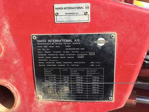 Trailed sprayer of the brand Hardi, type Navigator 3000, with a tank capacity of 3000 liters. Equipped with a 27-metre barrier and equipped with a GPS system with section closure for precise and efficient painting.