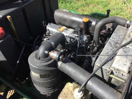 Equipped with front mower deck and double rear mower heads. Machine is equipped with hydrostatic drive and roll bar (ROPS).