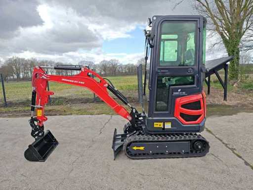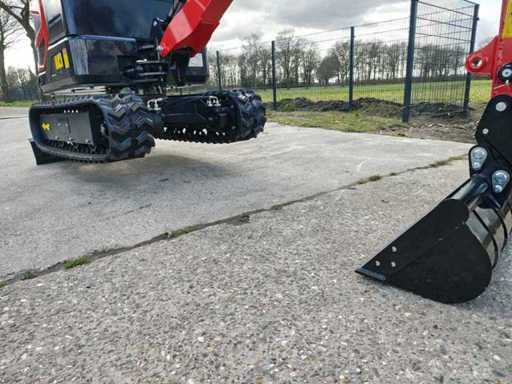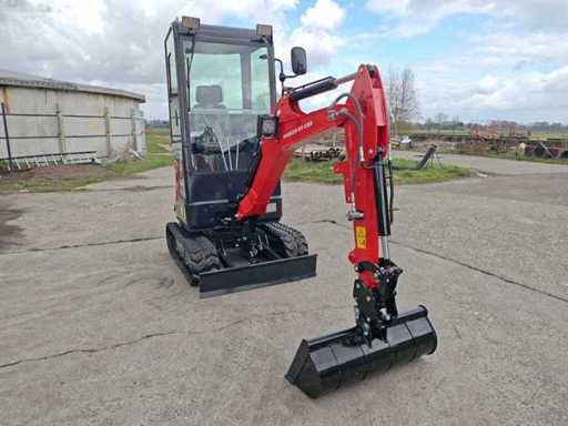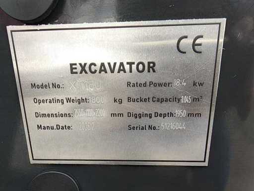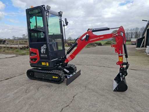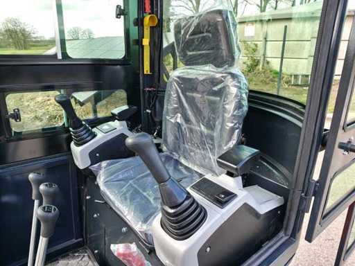 1800 kg mini excavator with 3 cylinder eur5 water-cooled diesel engine of 18.4KW / 25hp. Equipped with servo control. Equipped with cab, swing boom with radius of 1500mm, dozer blade 1100mm, semi automatic bucket change system, hydraulic pump 22L/min, breakout force 10KN, Excavator bucket 80cm, tank capacity 9.5 liters. Unused machine