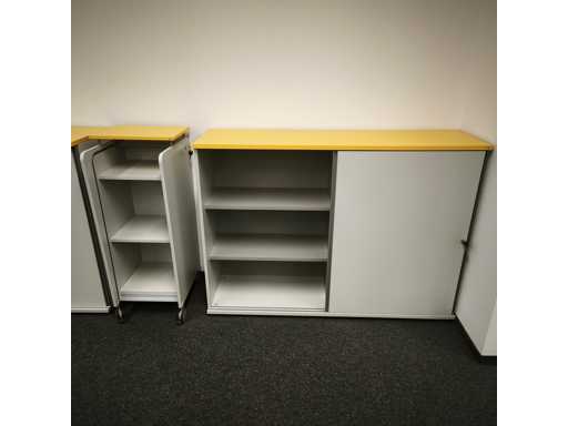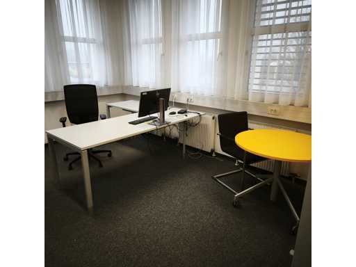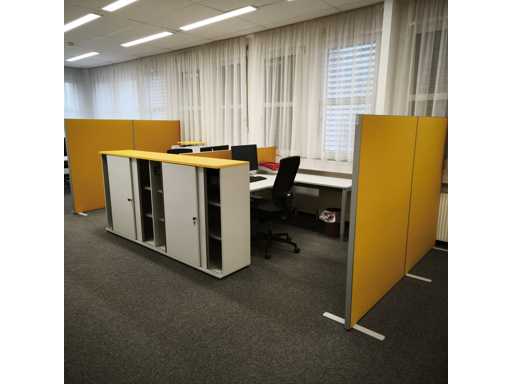 12x Hali 2000mm desks with returns; Hali half-height double door cabinets (various sizes); Tambour door mobile storage units; Hali full height double door cabinets; 14x chairs. Printers, PCs, telephones and docking stations excluded