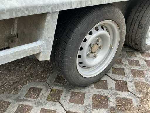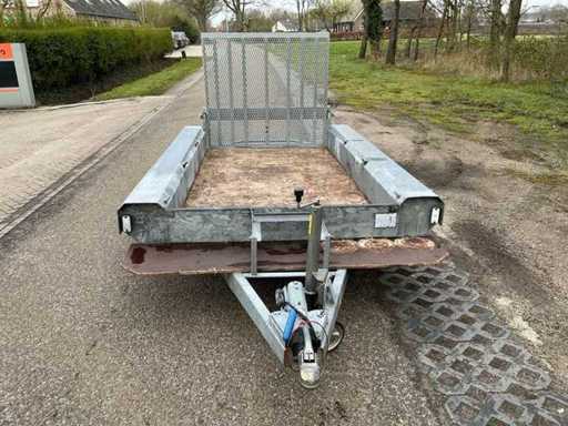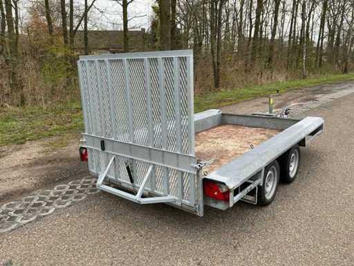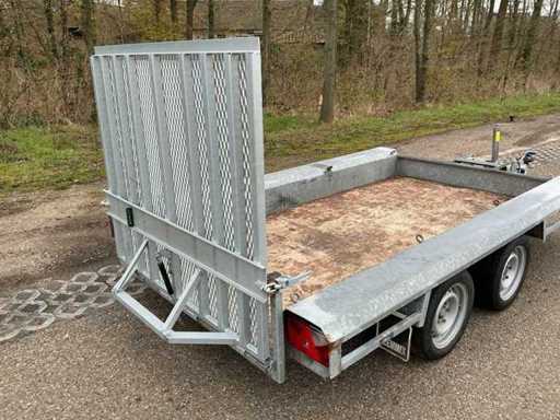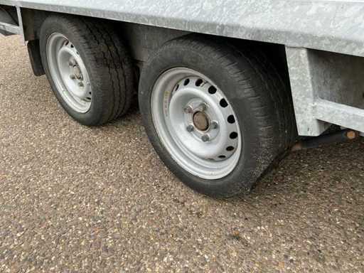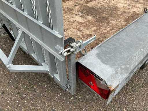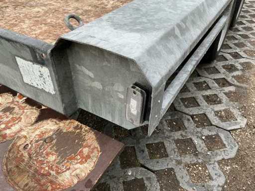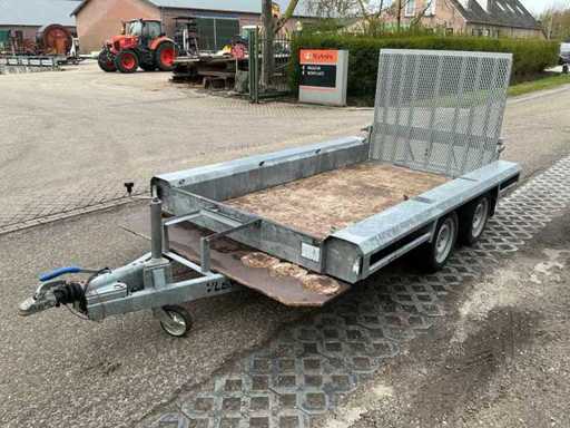 Equipped with: jockey wheel, Knott axles, anti-slip ramp, eye bolts for lashing straps, overrun brake, eccentric closure, machine transporter, 2700Kg, 2x axle 1350Kg.