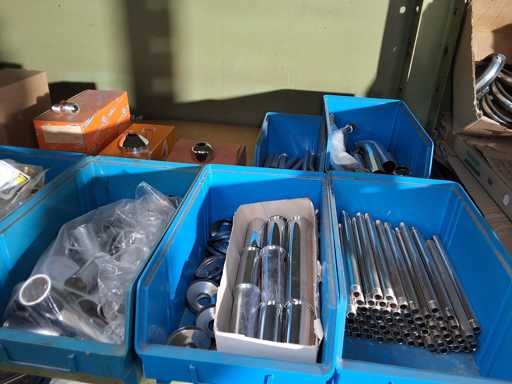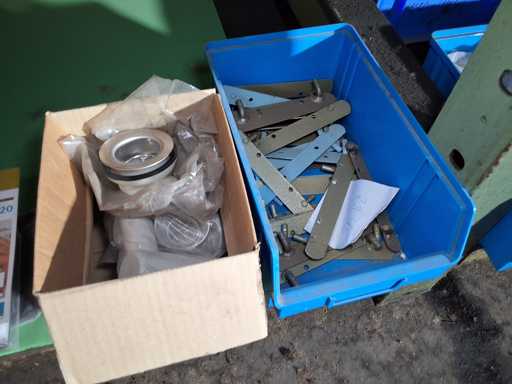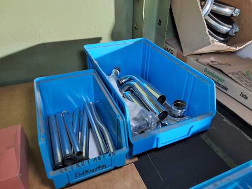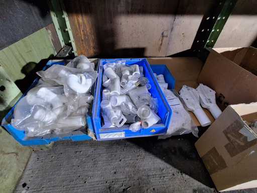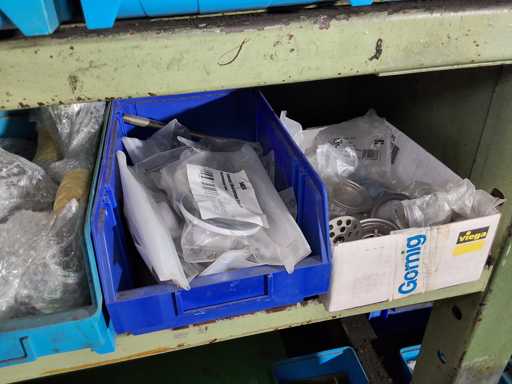 3 Regalinalte Viega - Roflex - Magno Sanitärinstallationsmaterial, u.a. WC Verbinder, Rohrschellen, Ausläufer, Verbinder, Ablagen, Rosetten und Gitter usw. siehe Fotos!
