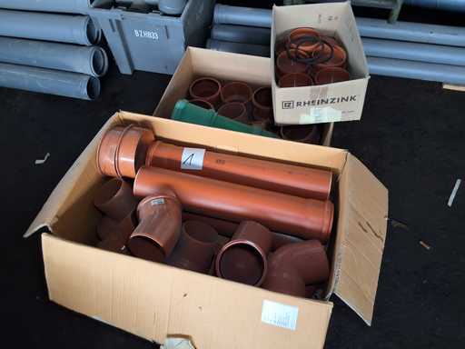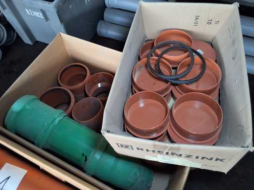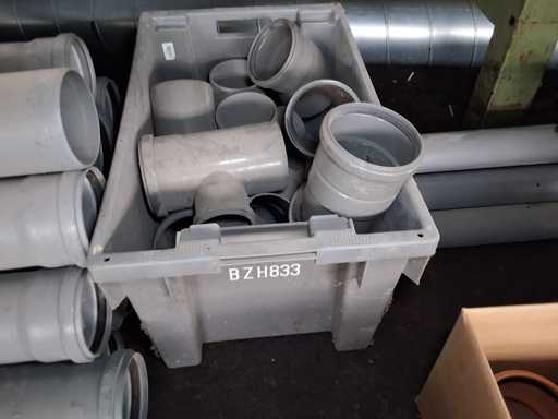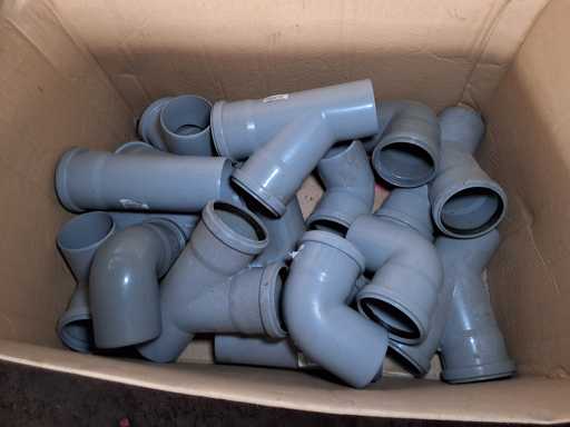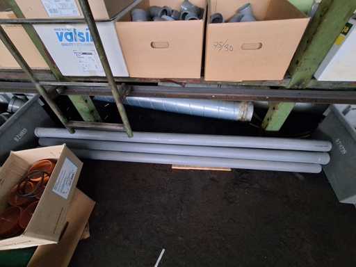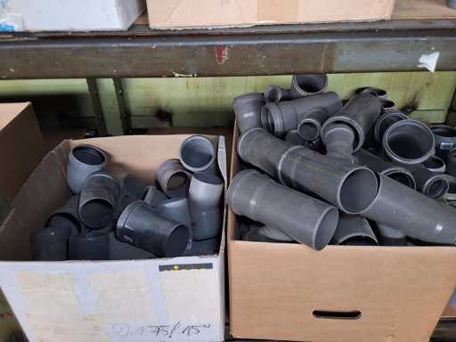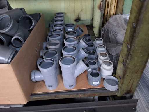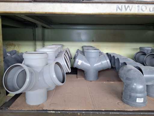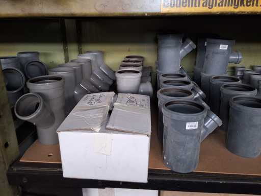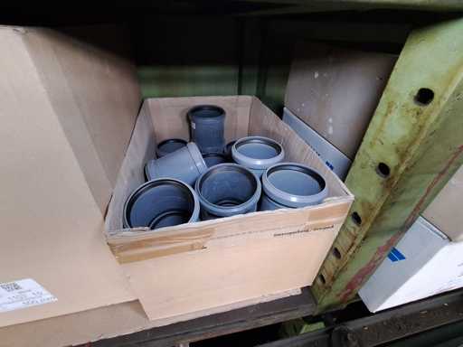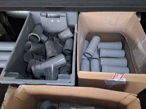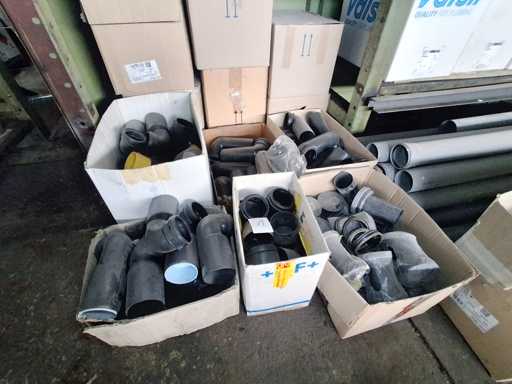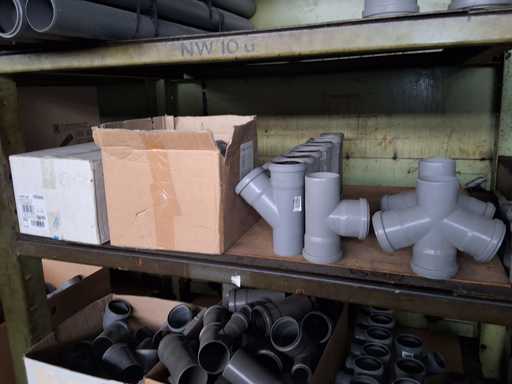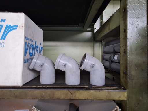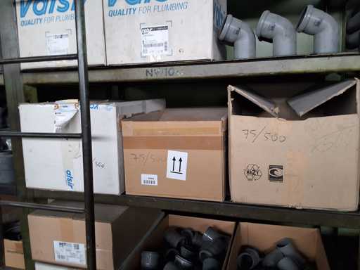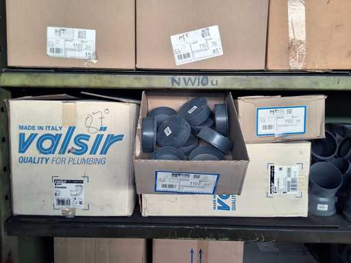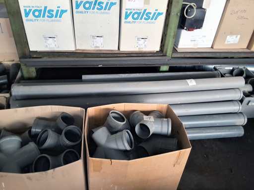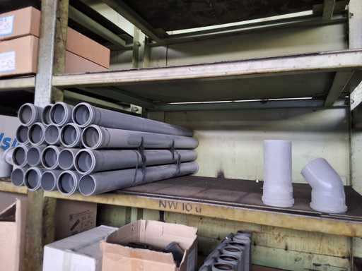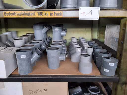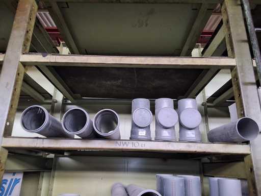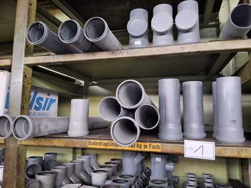 Großposten HT Valsir + Conel Installationsmaterial, 5 Regalinhalte dazu mehrere Posten Rohre + Muffen vor den Regalen, HT - Rohre + Abzweige in verschiedenen Ausführungen und Längen