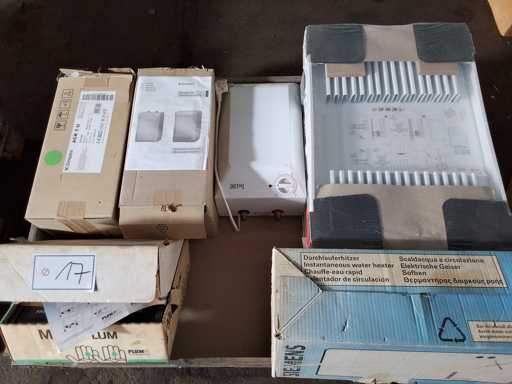 Palette Elektrogeräte SIEMENS + DIMPLEX + COSMO, 1 Durchlauferhitzer Siemens, 2 Thermo Dimplex ACK 5 U, 1 Therme Tec LINE, 1 Hygienespender Multi Plum, 6 Flachheizkörper E 11