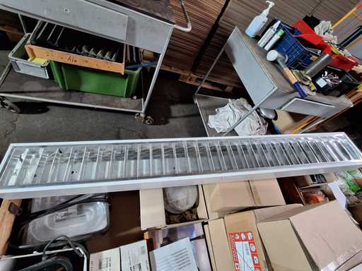 Palette mit Elektromaterial Beleuchtungstechnik Popp + Helios + Hager, ungeprüfte verschiedene Strahler + Lampen, Rasterleuchten, Rauchwarnmelder