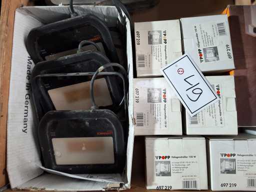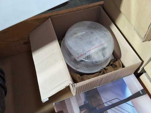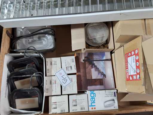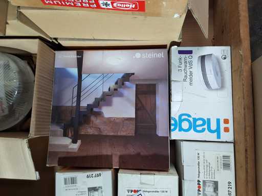 Palette mit Elektromaterial Beleuchtungstechnik Popp + Helios + Hager