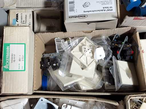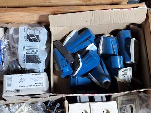 Palette mit Elektromaterial Hagen + Berker, Anschlußdosen, Kabelverschraubungen, CE Dosen blau, Verbindungsdosen u. a.