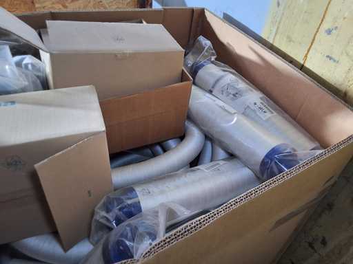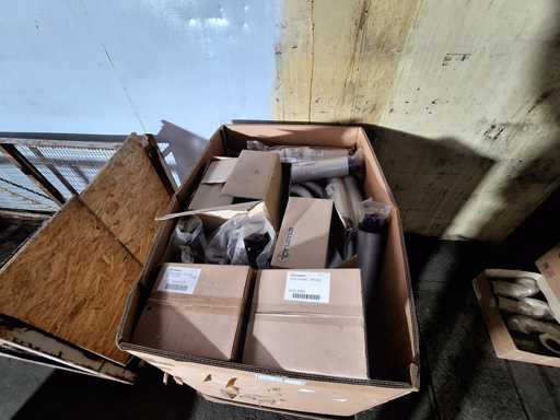 Palette mit TRUMA Teile, 1 Palette / Box mit verschiedenen Truma Teile, Schalldämpfer, flexible Rohre, Ausblaskanäle, Schellen und weitere ungeprüft!