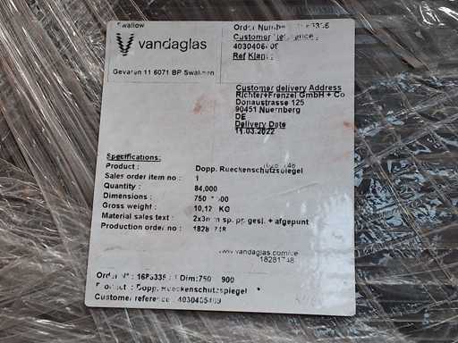 Palette Spiegel VANDAGLAS, Größe je 750 x 900 mm, Gewicht je Spiegel 10,2 kg, 84 Stück, Typ Rückenschutzspiegel