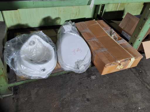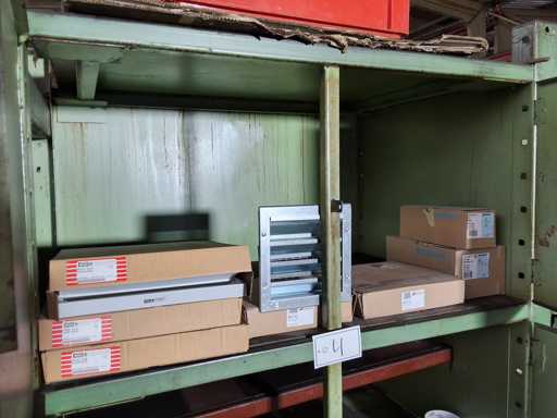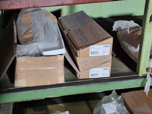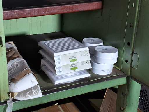 Regalinhalt von Geberit + VISA + Helios Sanitär und Installationsmaterial, Ablagen, Lüftungsgitter, Urinale, Rohrisolierungen und Verbindungsstücke
