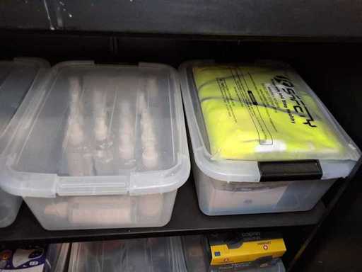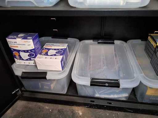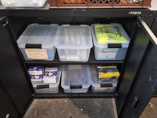 Schrank AREBOS mit Inhalt, Inhalt: verschiedene Körperschutzmittel + Masken FFP 3