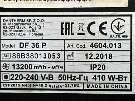 mobil; kippbar; Belüftung und Entlüftung; Luftverdrängung 13.200 m³/stunde; 230 Volt;