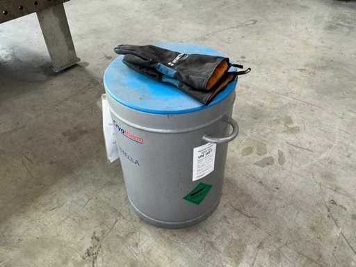 Volumen Innenbehälter 62,8 l, Volumen Außenbehälter 28,7 l, niedrigste Betriebstemperatur -196 ℃, inkl. Kälteschutz-Handschuhe