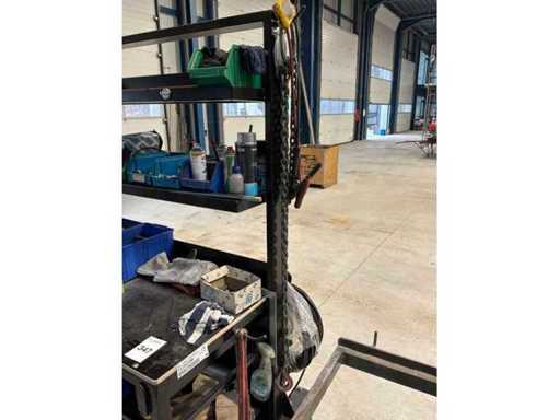 Arbeitstisch auf Rädern mit Inhalt