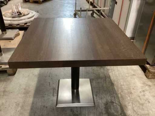 Tischfuß Basis Edelstahl, Säule Eiche Wenge gebeizt, Anschraubkreuz Stahl schwarz