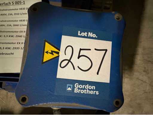 Acht verschiedene Elektromotoren, darunter 3ph-Modelltypen: 1 x EFI60 L4 B3 15kW 400V, 1 x EX 132 M4 7,5kW 400V, 1 x Ex 11 G, 1 x Ex112M2 4Kw, 1 x Ex AB30 400 V, 1 x AB36 160MA 400V, 2 x Ex11G 5,5Kw,