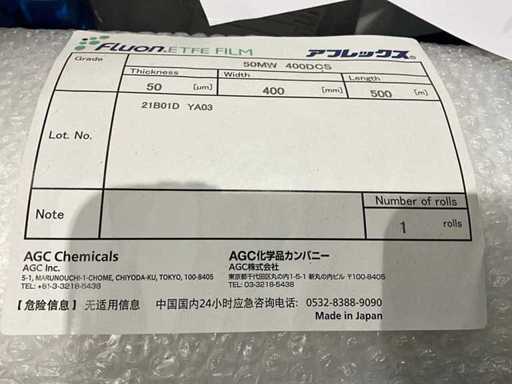 Dicke 50 μm, Breite 400 mm, Länge 500 mtr, 1 Palette