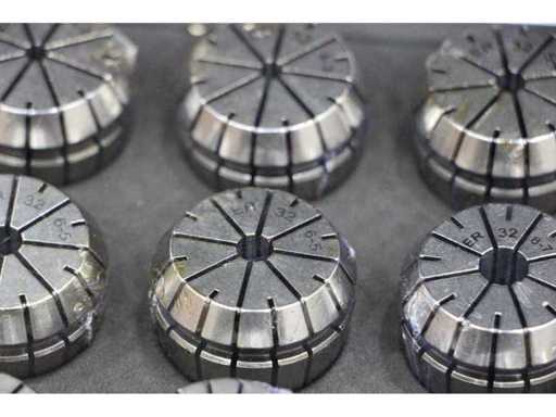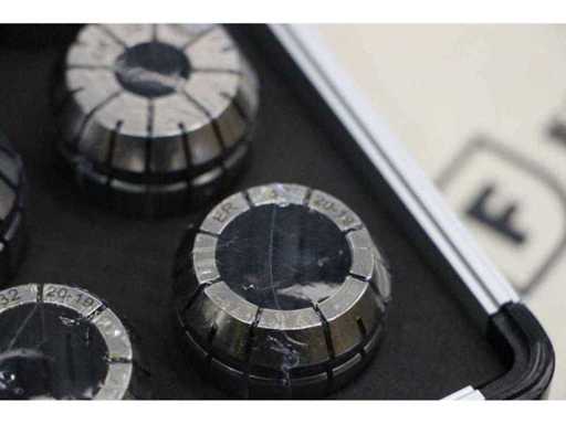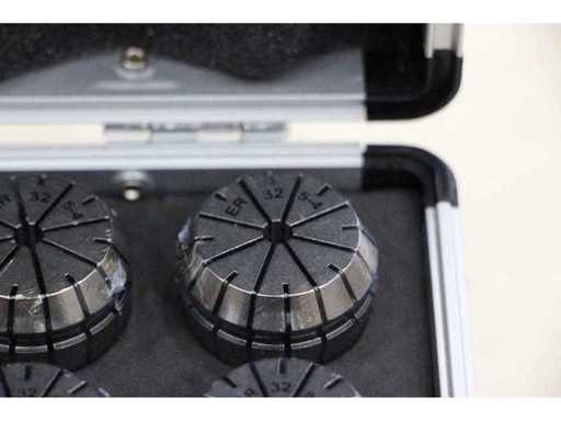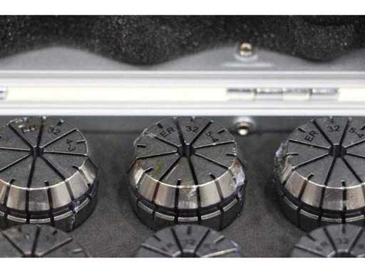 3 EINHEITEN/SETS ATT0005 ZUSAMMENGEPACKT. EINE EINZELNE ATT0005 ENTSPRICHT: Vollständiger Satz von 16 ER32-Präzisionsspannspangen von 2 mm bis 20 mm. Ideal für Gravur- und Fräsanwendungen auf CNC-Maschinen. Geliefert in einem haltbaren Metallbehälter für sichere Organisation und Transport.