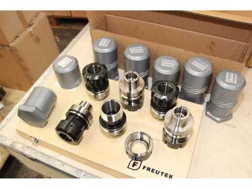 2 EINHEITEN/SETS GER0002 ZUSAMMENGEPACKT. EINE EINZELNE GER0002 ENTSPRICHT ZU: 6 Werkzeughalter, Marke Freutek, Typ HSK-63F-ER40, ausbalanciert, bis zu 25.000 U/min, neu verpackt, in verschlossener Tüte geschmiert und Einzelpackung.