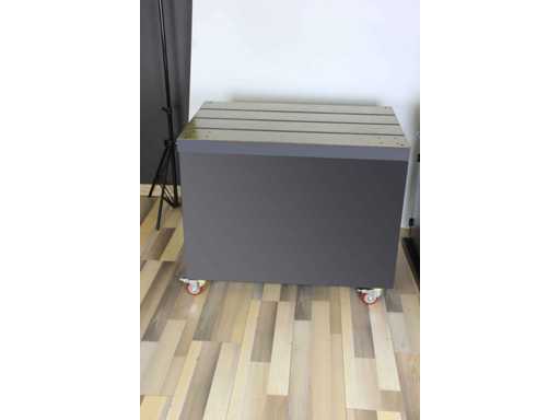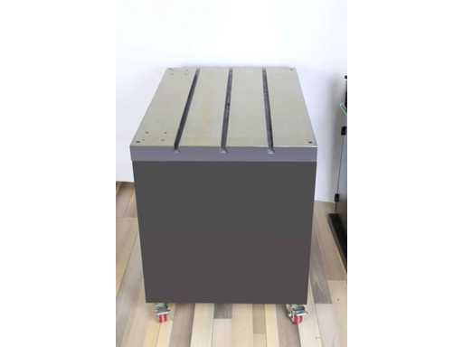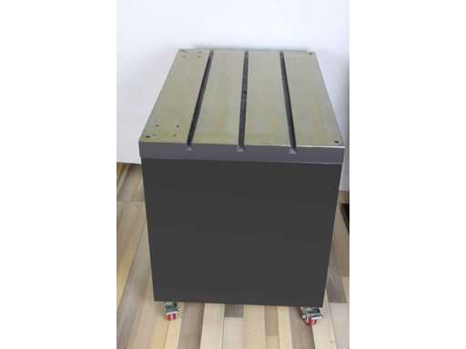 Schwermetall-Werkstattschrank mit 2 Türen und 2 Schubladen. Auf Rädern mit hoher Lastkapazität montiert. Obergröße 900 x 600 mm, Schrankgewicht 85 kg