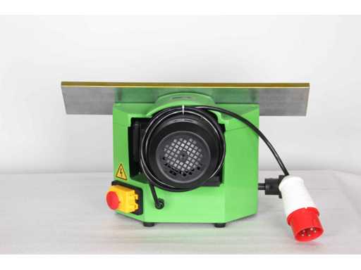 Tisch-Linear-Abschrägungsmaschine für Winkel von 15° bis 45°. Höhe 0–3 mm, Leistung 550 W, 2800 U/min. Gegenstandsgröße 535 x 385 x 300 mm, Gegenstandsgewicht 38 kg