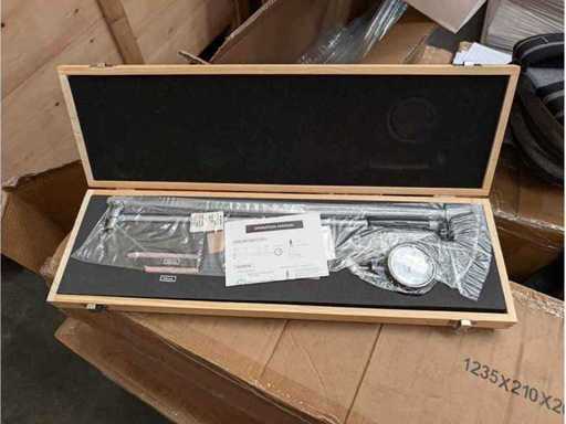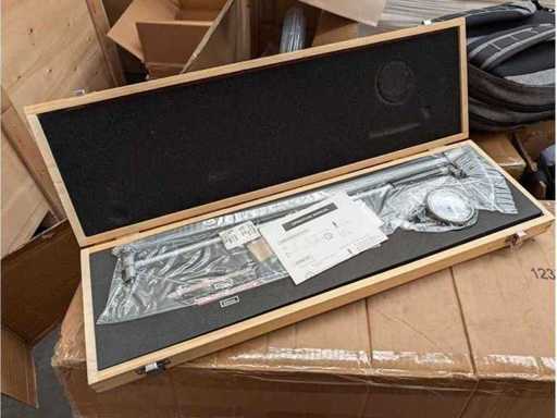 Präzisionsbohrungsanzeige mit zwei Kontaktpunkten und elastischen Elementen zur Zentrierung. Leichte und robuste Bauweise mit CFRP-Elementen für weniger thermische Ausdehnung und besseren Korrosionsschutz. Griff am Halter für weniger thermische Einflüsse. Sanfte und präzise Übertragung des Kontaktspitzenschlags über ein gebogenes Segment. Die verschiedenen Kontaktpunkte mit fest gehärteten Stahlkugeln ermöglichen es, die verschiedenen zu messenden ⌀ zu komponieren. Anwendung: Zur Präzisionsmessung von ⌀, Rundung und Zylinderität von inneren Bohrungen und Profilen. In einer Holzkiste. Reichweite: 100–300 mm, Tiefe: 350 mm