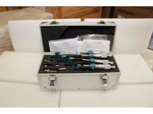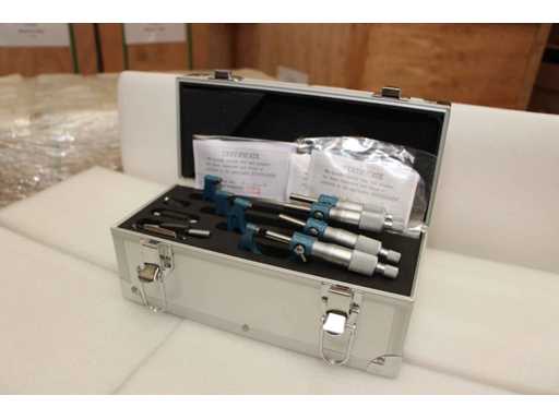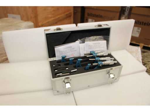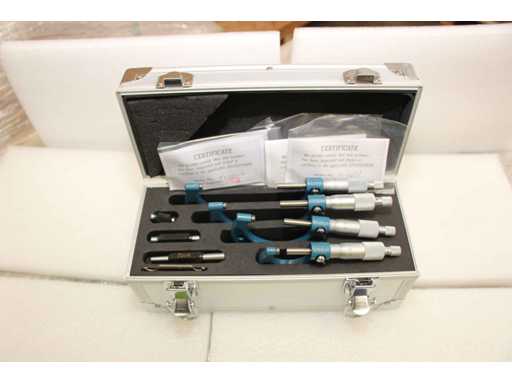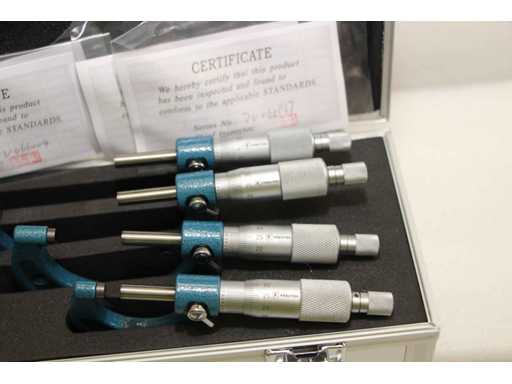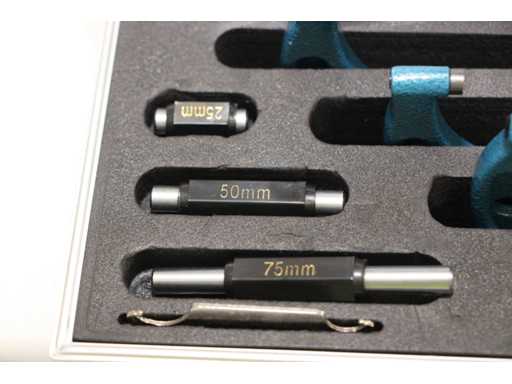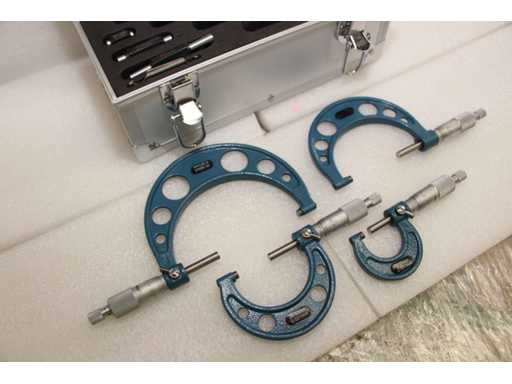Ein Set besteht aus 400 Mikrometern für Messungen von 0 bis 100 mm. Maße: 0–25 mm; 25-50 mm; 50–75 mm; 75-100 mm. Zertifikat enthalten