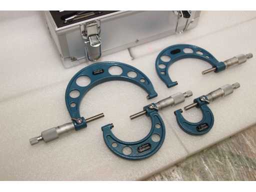 FREUTEK SDM0055 Set von 4x millesimalen externen Mikrometern 0–100 x 0,001 mm