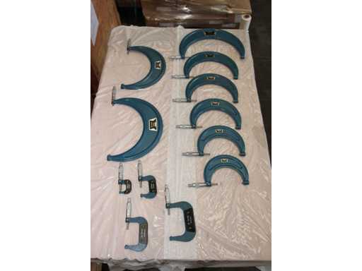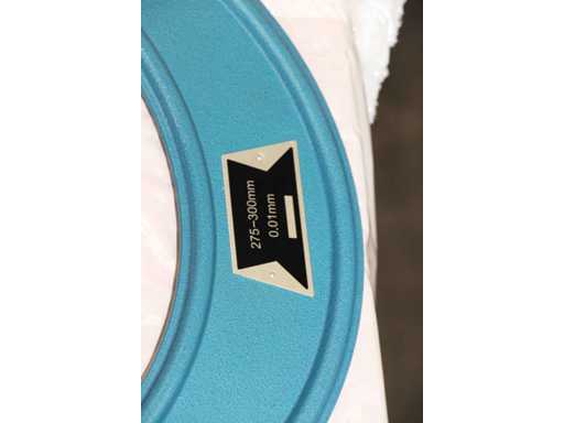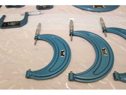 Das Set besteht aus 12 Zentesimal-Mikrometern für Messungen von 0 bis 300 mm. Maße: 0–25 mm; 25-50 mm; 50–75 mm; 75-100 mm; 100–125 mm; 125–150 mm; 150–175 mm; 175–200 mm; 200–225 mm; 225–250 mm; 250–275 mm; 275-300 mm. Zertifikat enthalten