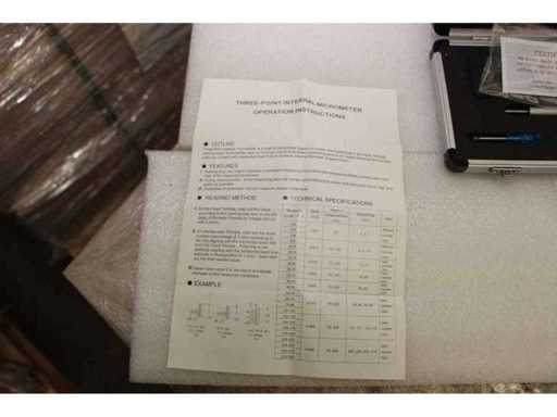 4 EINHEITEN/SETS SDM0058 ZUSAMMENGEPACKT. EIN EINZELNER SDM0058 ENTSPRICHT: Dreipunktmikrometer für interne Messungen von 12 bis 16 mm. Durchmesser 10,8 mm, Tiefe bis zu 74 mm, Höhe der Messspitzen 6,3 mm. 12 mm Kalibrierungsring enthalten. Genauigkeit 4 ähm, Auflösung 0,005 mm. Eingefügtes Zertifikat
