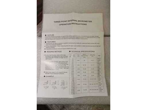 4 EINHEITEN/SETS SDM0060 ZUSAMMENGEPACKT. EINE EINZELNE SDM0060 ENTSPRICHT: Dreipunktmikrometer für interne Messungen von 20 bis 25 mm. Durchmesser 17 mm, Tiefe bis zu 85 mm, Höhe der Messspitzen 8,8 mm. 20 mm Kalibrierungsring enthalten. Genauigkeit 4 ähm, Auflösung 0,005 mm. Eingefügtes Zertifikat