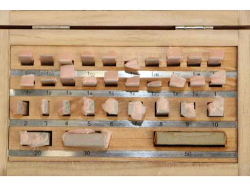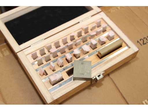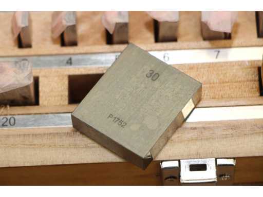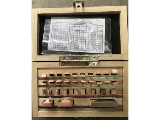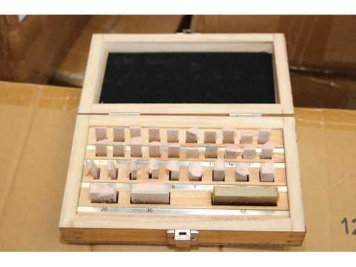 Das Set besteht aus 32 Stahlspurblöcken, Größen von 1,005 mm bis 50 mm. Betriebsreferenztemperatur 20°C. Standard verwendete DIN861. Inklusive Holzkiste.