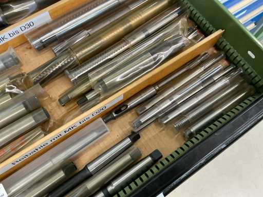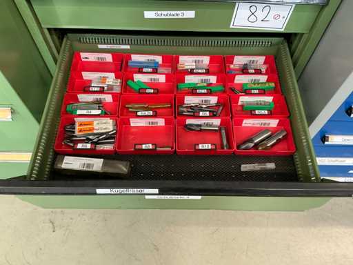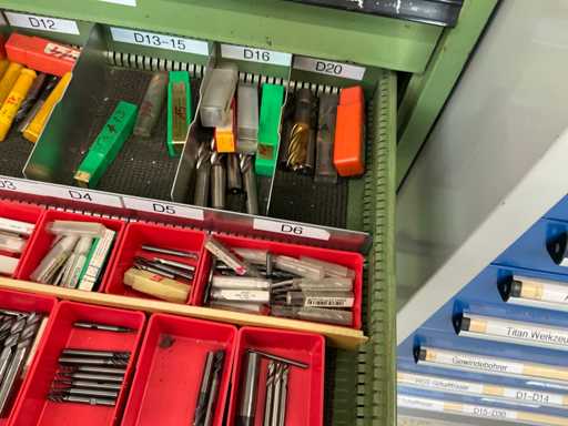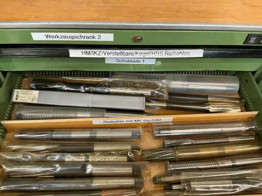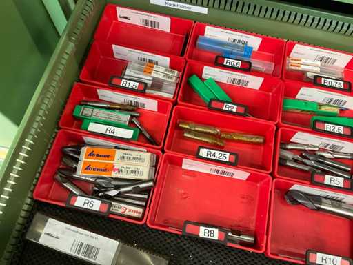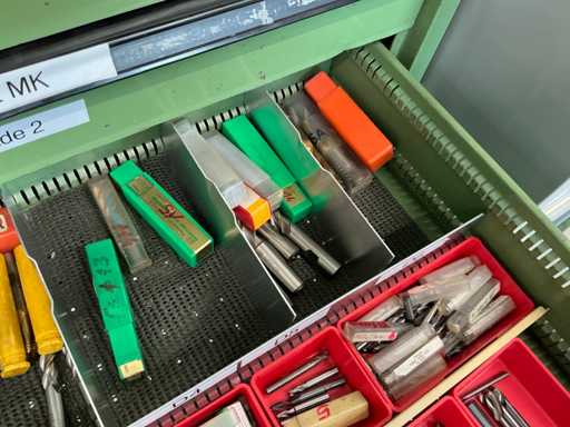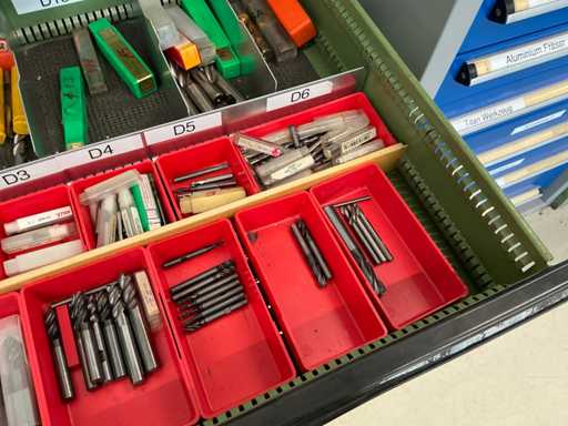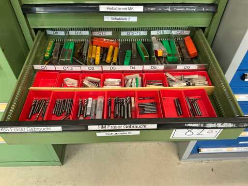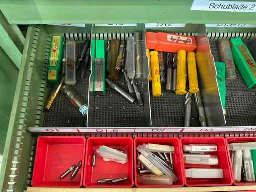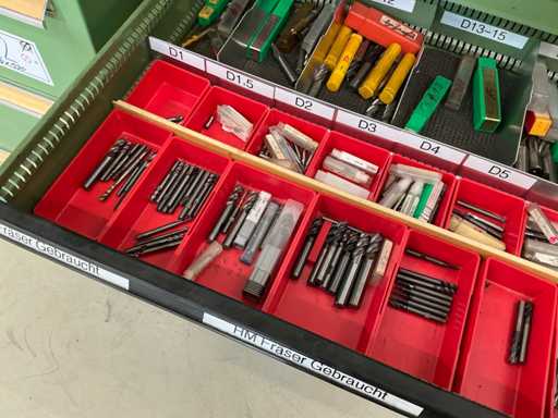 Mit großer Anzahl Fräsern, Bohrern, Reibahlen und mehr