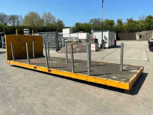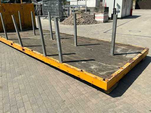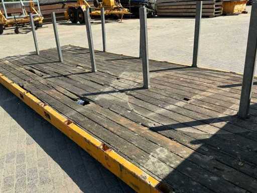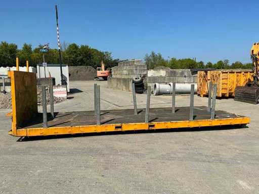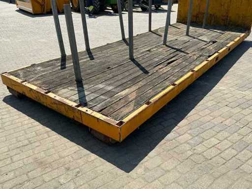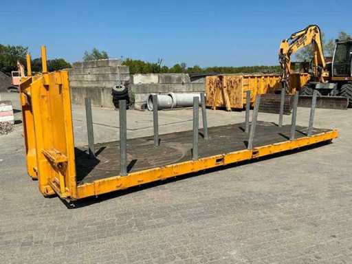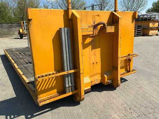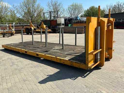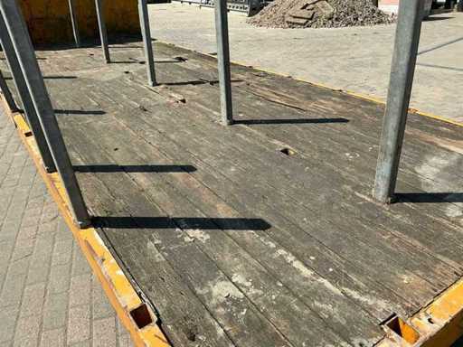 Ausgestattet mit: abnehmbaren Stützen, Hakenliftverbindung, Holzboden, Rollen am Heck.