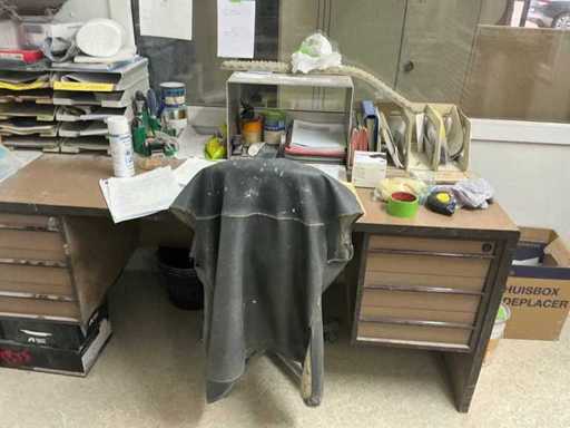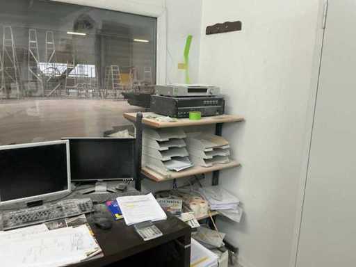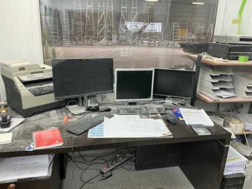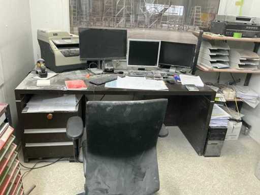 Bestehend aus: 2 x Schreibtisch, 2 x Stuhl, 2 x Aktenschrank, 1 Kommode, 1 Brother-Drucker, 3 Monitore, Musikanlage, PC – nicht enthalten
