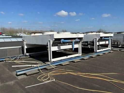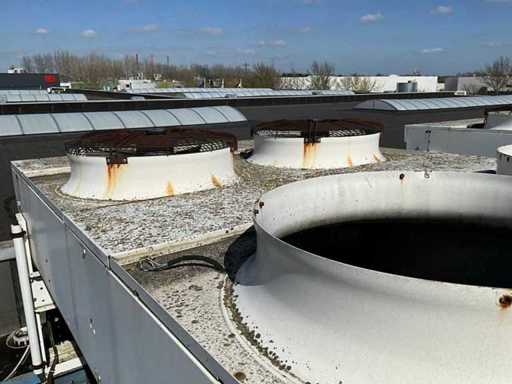 2x Kondensator auf dem Dach, pro Kondensator, 4x Lüfter, montiert auf Stahlrahmen, Breite pro Kondensator 2250 mm, Bitte beachten Sie! Abholung nach Termin, Rohrleitungen nicht enthalten, Kältemittel bereits abgelassen