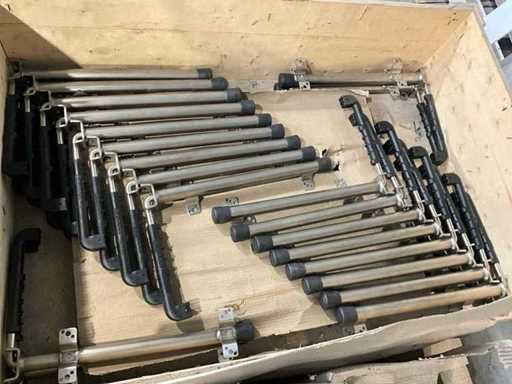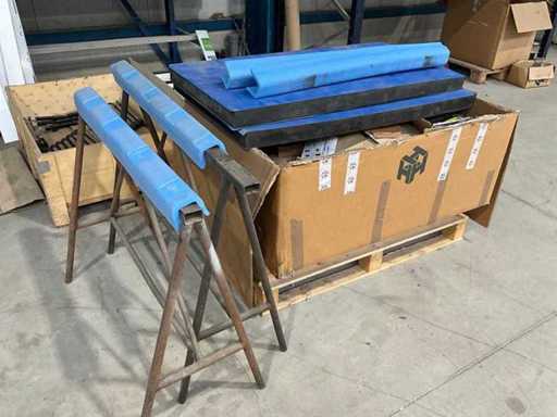 Inhalt besteht aus verschiedenen Edelstahlprofilen, einer 2x-Eisenbrücke, einer Holzkiste mit Türverschlüssen, einem Kühlwagen
