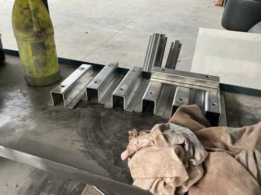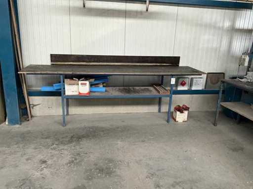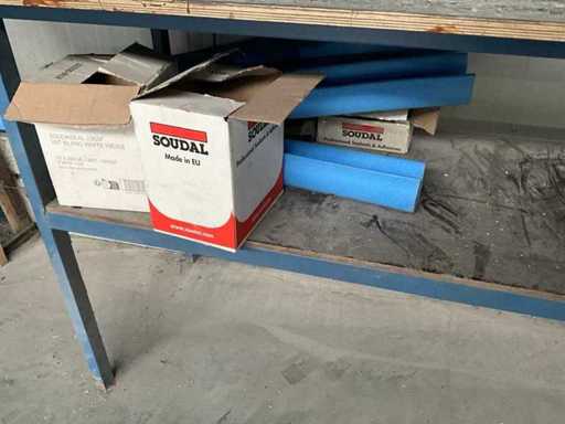 Bestehend aus einem konstruierten Regal mit integriertem Arbeitstisch in der Größe 1000x3000x2700 mm mit verschiedenen Dichtungen und Werkzeugen sowie den Arbeitstischmaßen 750x3060x950 mm mit Inhalt, + konstruierten Gestellenmaßen 470x2500x2200 mm mit verschiedenen Gasfedern