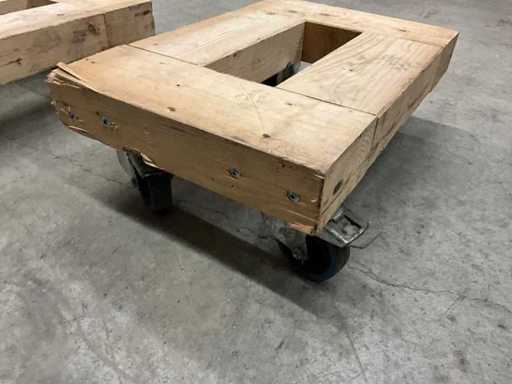 Rollwagen aus massiven Holzbalken – jeweils vier Lenkrollen – Blue-Wheels