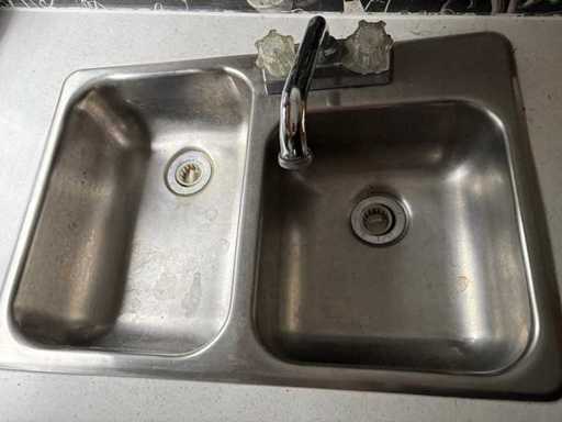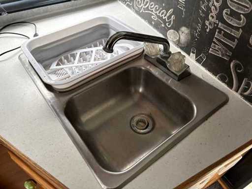 • Küchenzeile mit Spüle, Herd und Kühlschrank