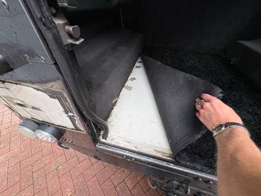 Innenraum zweckmäßig und sauber, Sitze gut erhalten, Verkleidungen vollständig. Elektrik und Beleuchtung funktional. Das Fahrzeug wurde technisch nicht inspiziert durch Vavato, TÜV gültig bis 03/2026, aber es wird empfohlen, den Rost vor weiterer Nutzung fachmännisch zu beurteilen.