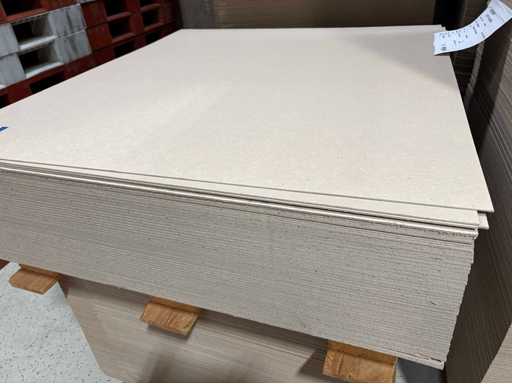 16 Paletten mit 1260 mm x 960 mm x 3 mm Dicke, mit Zwischen- und Abdeckungsplatten. Ungefähr 375 Blätter pro Palette.